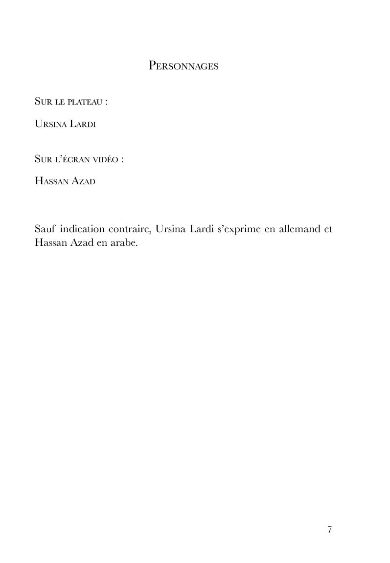 Dans cette pièce s’entrecroisent deux monologues. D’abord celui d’Ursina Lardi, qui interprète une photographe reporter de guerre, fascinée par la violence, et qui possède une sorte d’instinct prémonitoire des catastrophes qui vont se produire : c’est pourquoi on l’appelle « Celle qui voit ». Mais la violence qui la fascine va finalement se retourner contre elle. Il y a aussi le récit d’Azad Hassan, un jeune professeur irakien qui nous raconte, sur écran vidéo, comment l’Etat islamique l’a puni en lui coupant une main. Leurs deux récits finissent par se rencontrer…