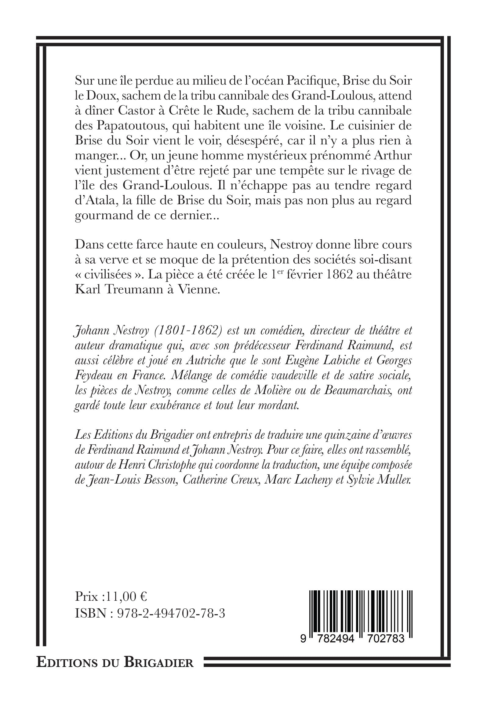 Dans cette farce haute en couleurs, Nestroy donne libre cours à sa verve et se moque de la prétention des sociétés soi-disant "civilisées". La pièce a été créée le 1er février 1862 au théâtre Karl Treumann à Vienne.