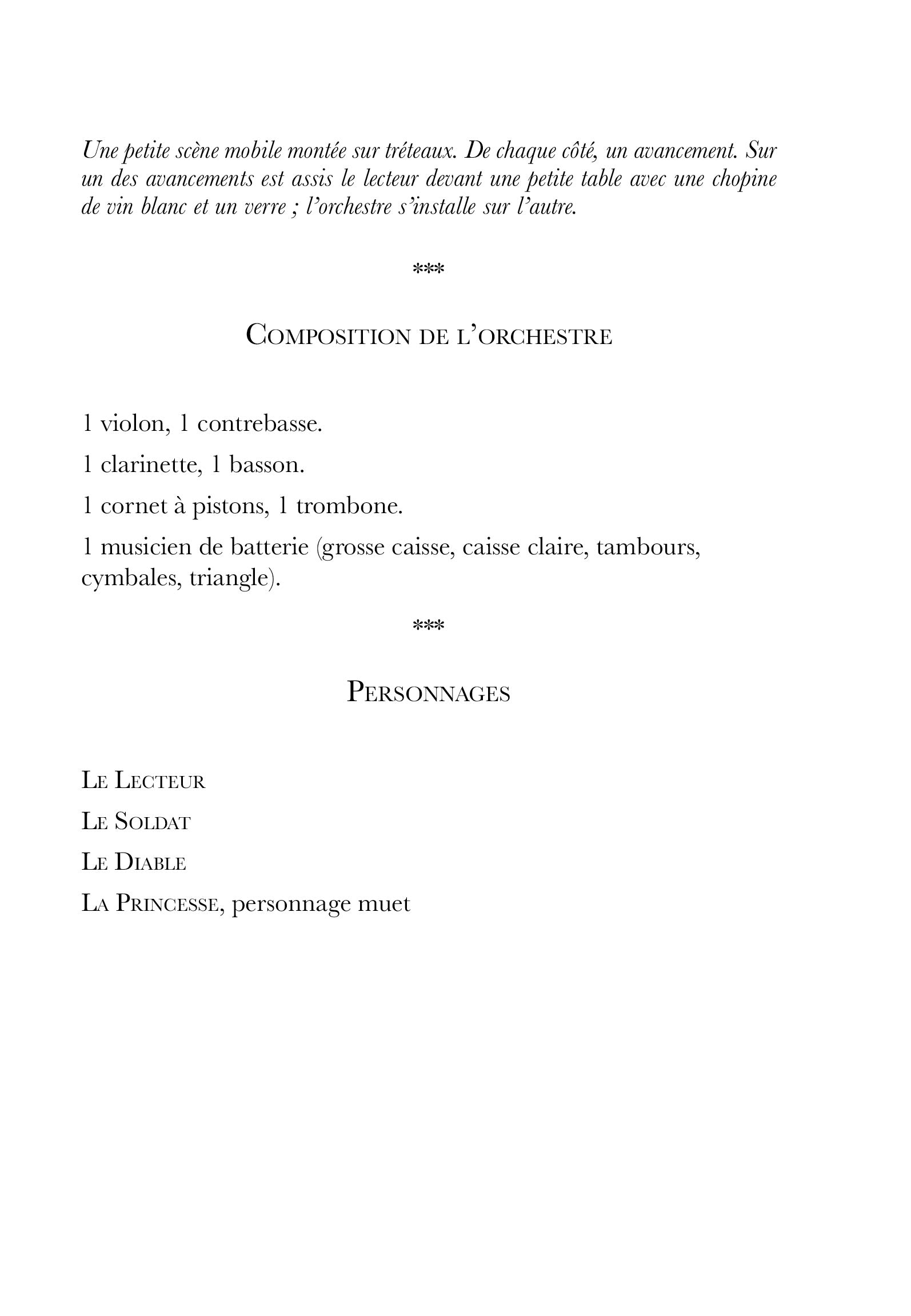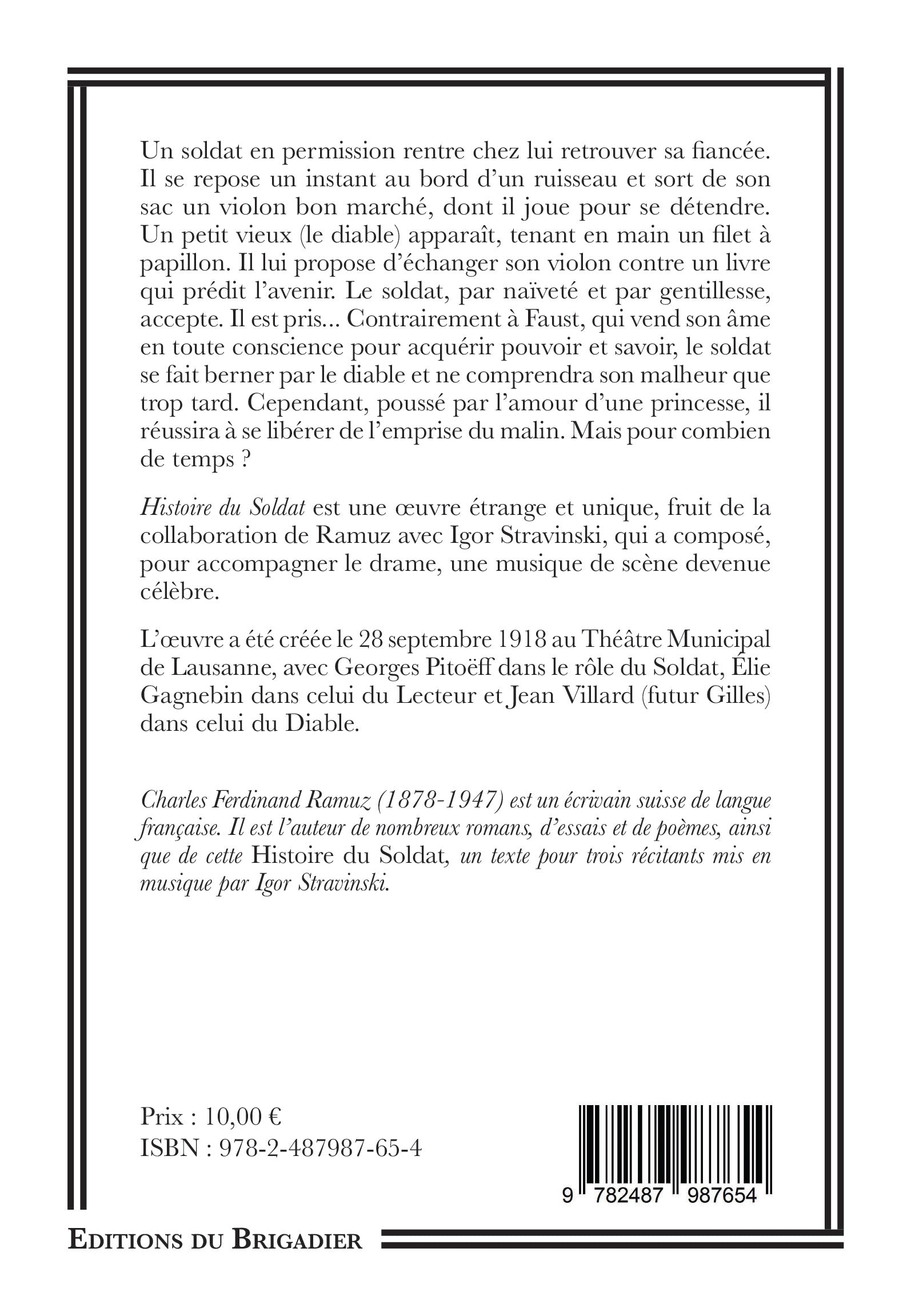 Histoire du Soldat est une œuvre étrange et unique, fruit de la collaboration de Ramuz avec Igor Stravinski, qui a composé, pour accompagner le drame, une musique de scène devenue célèbre.