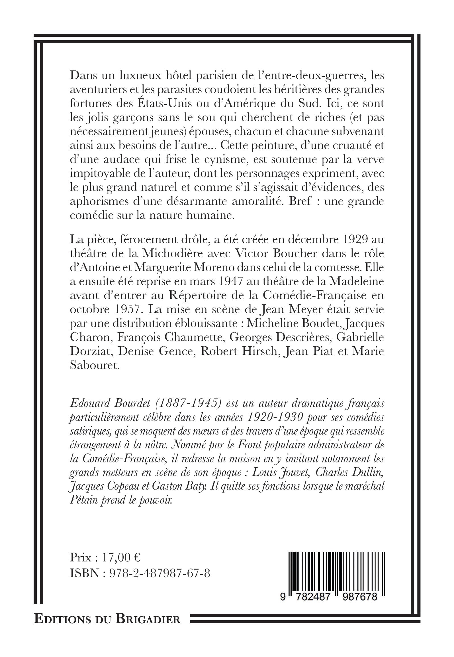 La pièce, férocement drôle, a été créée en décembre 1929 au théâtre de la Michodière avec Victor Boucher dans le rôle d’Antoine et Marguerite Moreno dans celui de la comtesse. Elle a ensuite été reprise en mars 1947 au théâtre de la Madeleine avant d'entrer au Répertoire de la Comédie-Française en octobre 1957. La mise en scène de Jean Meyer était servie par une distribution éblouissante : Micheline Boudet, Jacques Charon, François Chaumette, Georges Descrières, Gabrielle Dorziat, Denise Gence, Robert Hirsch, Jean Piat et Marie Sabouret.