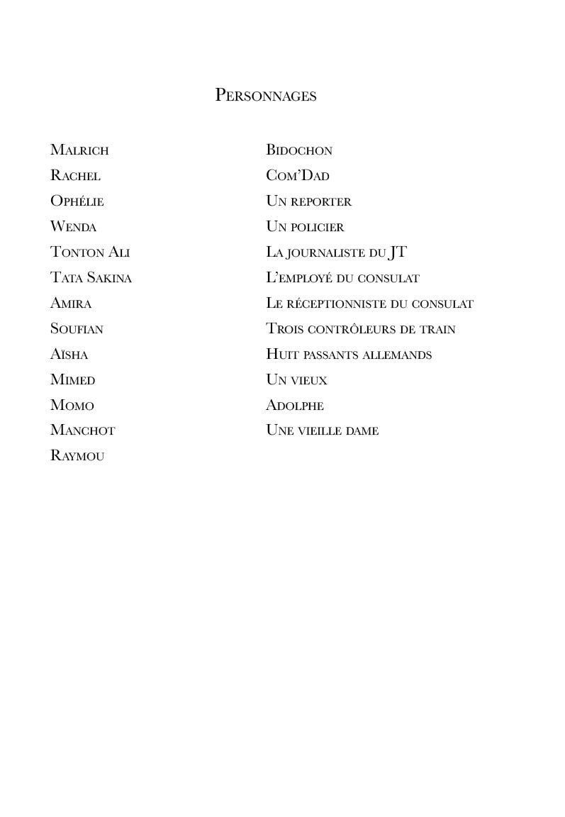 L’adaptation théâtrale que Luca Franceschi a tiré du roman de Boualem Sansal est remarquable d’énergie et nous transporte tour à tour en Algérie, en France et en Allemagne, à travers une série de séquences courtes, intenses, parfois drôles et souvent poignantes. La pièce a été créée par la Compagnie des Asphodèles du Colibri (Direction Thierry Auzer et Céline Courant) le 9 mars 2023 au théâtre de l’Iris à Villeurbanne, dans une mise en scène de Luca Franceschi, avec Samuel Camus, Lysiane Clément, Yann Ducruet, Alexandra Nicolaïdis, Valérian Moutawé et Nicolas Moisy.